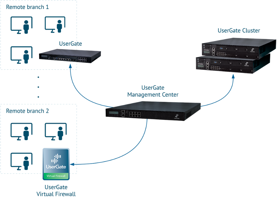 - UserGate Management Center C, поддержка и управление двух и более межсетевых экранов UserGate: