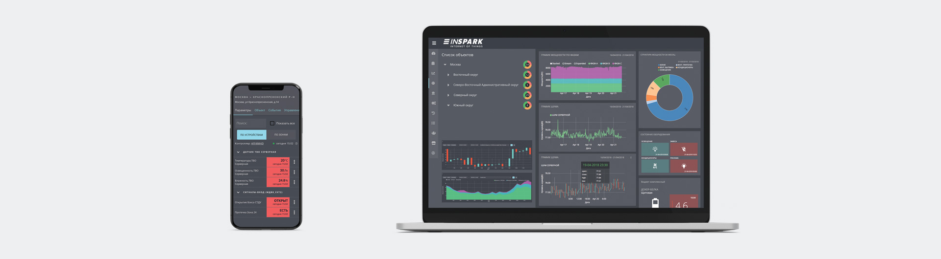 - Анализ показаний датчиков освещения, температуры, влажности, шума, СО2 и т.д.;